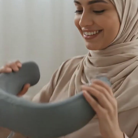 Smooth operation of the product: First of all, the product should be placed in the massage area, take the massage neck as an example, put the product on the shoulder, after the smooth placement, pull the buckle to the back and plug in, at the same time long press the power button for 3 seconds to start the product, short press the power button to switch the massage mode.